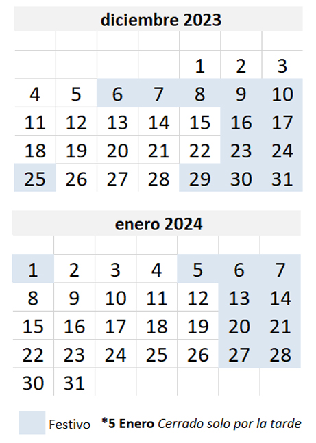 Os recordamos que durante estas Navidades la empresa permanecerá cerrada el 25 y 29 de diciembre y el 1 y 5 de enero. Disculpen las molestias.
